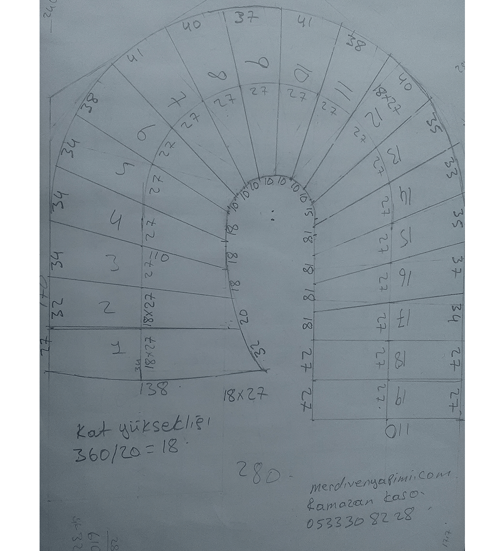 Merdiven yapacağımız alanın önceden yerinde ölçüsü alarak merdiveni projelendiriyoruz. Merdiven kova boşluğu standartlara uygun değilse, alanda tadilat yapıp yeterli hale getiriyoruz.